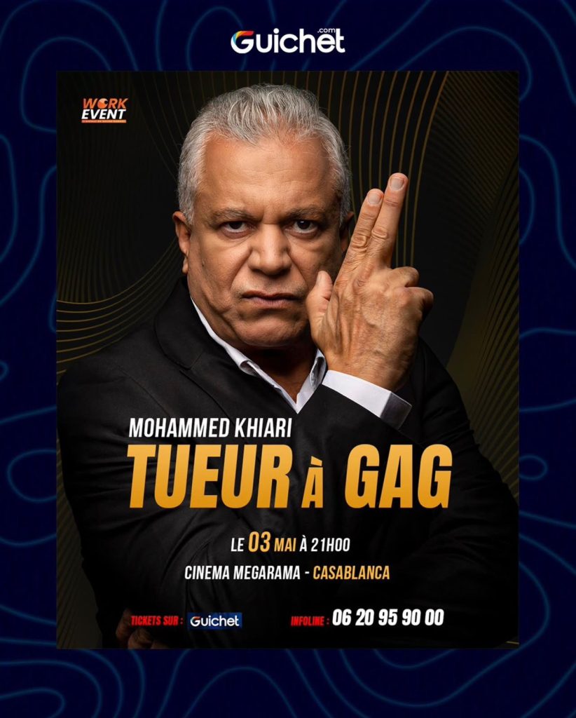 قدم الفنان المغربي محمد الخياري، اليوم الثلاثاء 03 ماي الجاري، عرضا كوميديا جديدا بعنوان “TUEUR À GAG”، على الساعة التاسعة مساءا بقاعة سينما ميغاراما بمدينة الدار البيضاء.