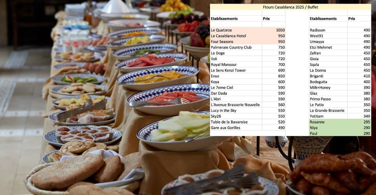ونشر الكراب على حسابه الرسمي بموقع فيسبوك، اليوم الأربعاء، وثيقة تتضمن أسعار وجبات الفطور الرمضاني في أكثر من مؤسسة سياحية بالدار البيضاء، أغلبها فنادق مصنفة، وتبدأ الأسعار مما يقرب من 300 درهم إلى أكثر من ألف درهم.