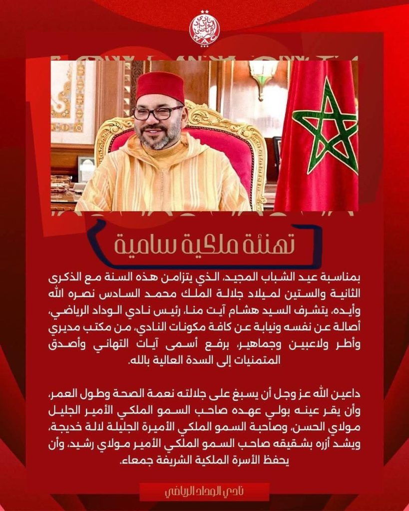 تهنئة نادي الوداد للملك بصياغة خاطئة تثير الجدل!