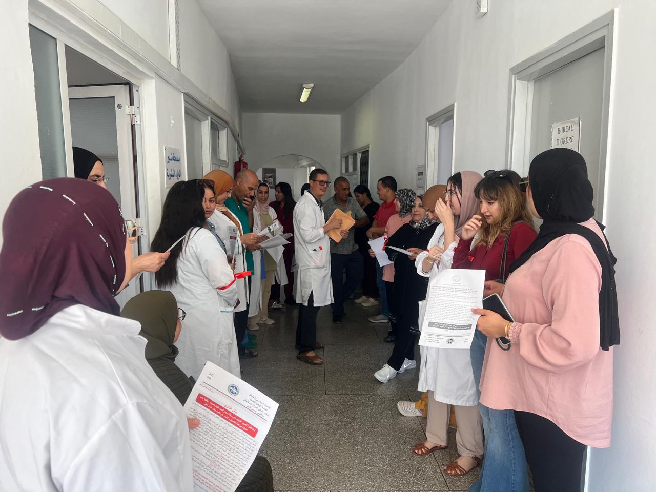 وعرف الاحتجاج المنظم اليوم، قراءة بيان إنذاري داخل إدارة المركز الاستشفائي الإقليمي بسيدي قاسم بحضور مسؤولي الإدارة وأعضاء المكتب المحلي، مع حمل الشارة كإجراء رمزي ضمن برنامج احتجاجي تصعيدي مرتقب.