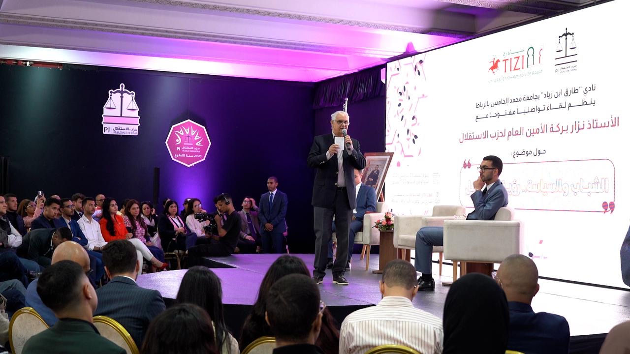 استضافت مبادرة “طارق ابن زياد” بجامعة محمد الخامس بالرباط، الأمين العام لحزب الاستقلال، نزار بركة، مساء اليوم السبت 25 أبريل 2026. في لقاء تواصلي معنون ب”الشباب والسياسة، رؤية للمستقبل”، في سياق أنشطتها الهادفة لتعزيز حضور الشباب على مستوى العمل السياسي.
