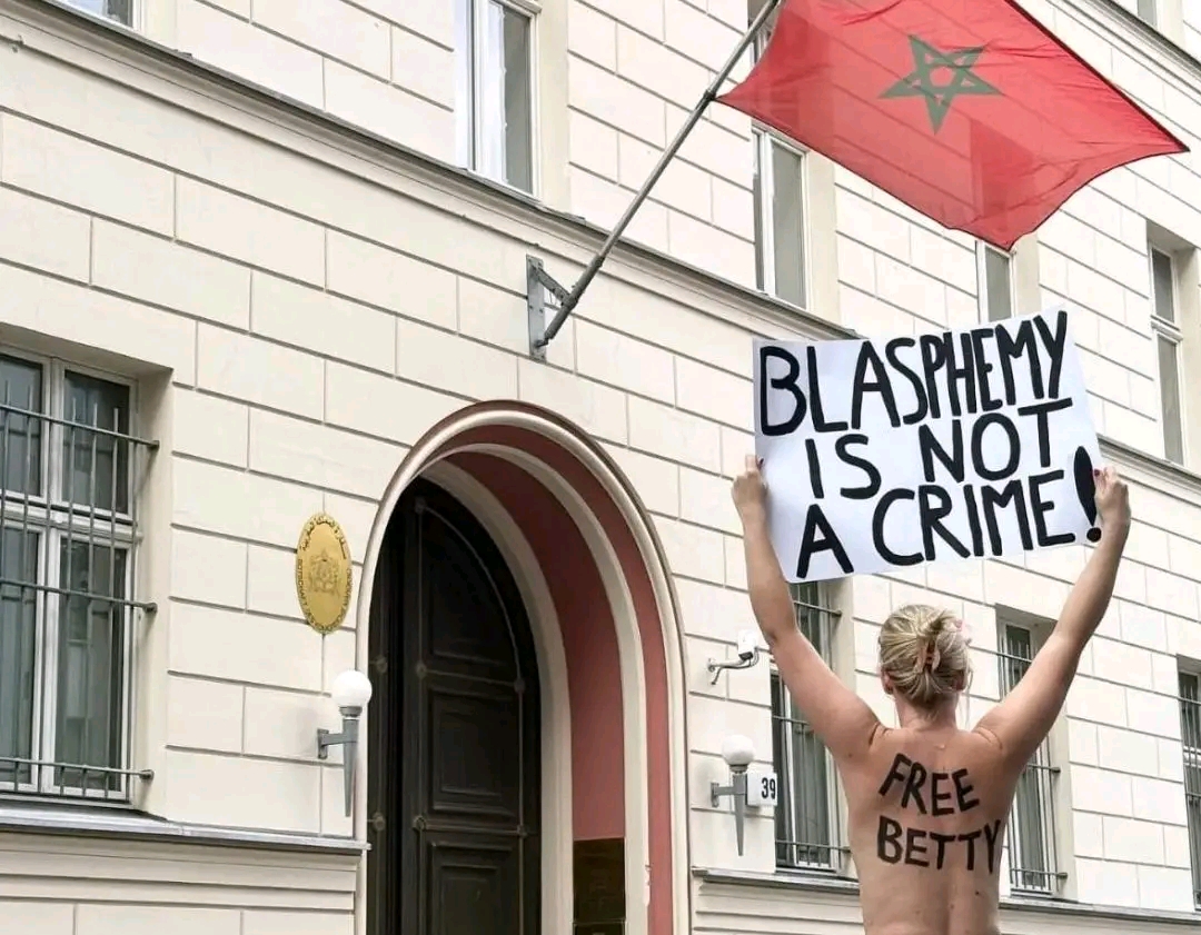 نظمت ناشطات من حركة "فيمين"، اليوم السبت، وقفة احتجاجية أمام سفارة المملكة المغربية في برلين، وهن عاريات وعلى ظهورهن عبارة…